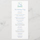 This classic wedding program design features a timeless watercolor botanical crest in sap green and mid blue.