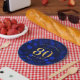 Sapphire Blue Bokeh Cheers to 80 Years Birthday Paper Plates