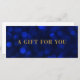 Gift Certificate card that you can add your logo featuring the words "A Gift For You" in faux gold foil against a sapphire blue bokeh lights pattern background on the front.