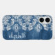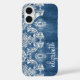 Sapphire Blue Vintage Damask Pattern Name Case-Mate iPhone Case
