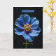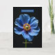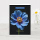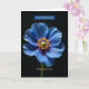 Designed with a close-up view of a single blue flower, this image places the blossom against a deep black background so it feels like it’s floating in the dark. The petals spread outward in layered shades of cerulean and sapphire, with soft folds that look as gentle as a caring touch between close friends ❤️. Near the center, deeper indigo and hints of violet gather in the inner creases, guiding your eye inward like a quiet, intimate pull. At the heart sits a tight cluster of golden-yellow anthers circling a small green pistil, creating a warm-and-cool contrast that feels like a shared glance across a room. Soft lighting adds smooth highlights along the petal edges, while the surrounding darkness keeps everything focused on the flower’s glow. A short line of gold text appears near the top inside a narrow blue banner, and a second line of matching gold text sits along the lower edge, balancing the layout 🌼. The gold lettering has a flowing, calligraphic look that stands out crisply against the dark background and the blue banner. The final detail is the luminous yellow center framed by blue petals, with the top banner hovering above and the lower gold line resting near the bottom border.