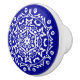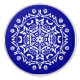 This white mandala sits on a bright, deep blue background. The colors are intelligent and introspective. Part of the Mola Mandala Collection.