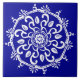 This white mandala sits on a bright, deep blue background. The colors are intelligent and introspective. Part of the Payon Mandala Collection.