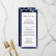 A classic dinner menu offering starters, main course and dessert selections. Titles are written in a classic black swash font calligraphy and the menu selections are in an easy to read block text. The menu is fully customizable for any occasion. A gorgeous deep sapphire blue wedding invitation suite featuring art gallery quality watercolors of navy blue peonies and eucalyptus sprigs painted in exquisite detail.