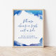 Custom printed wedding sign with an abstract blue watercolor border to coordinate with our Sapphire Tide collection. The text reads "Choose a seat, not a side. We're all family once the knot is tied!" Use the design tools to edit the wording, fonts and colors or upload your own photos to create a unique one of a kind wedding welcome sign.