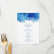 Custom printed wedding menu cards with an abstract blue watercolor border to coordinate with our Sapphire Tide collection. Customize the text with your wedding menu options. Use the design tools to edit the fonts and colors or move text around to fit your menu selections. This ocean-inspired design is perfect for a destination wedding on the beach!