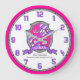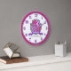 Knights style shield monogram letter S art name simple numbered wall clock perfect for a girls bedroom or playroom in shades of pink, purple, white, and gray. Personalize with your child's own name and name meaning for a personalized touch to your child's bedroom or nursery, this example is for names with the letter S. Currently reads Sarah. Compassionate, strong & alluring. Unique shield drawing, graphic art, name research, wording and design by Sarah Trett for www.mylittleeden.com