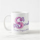 Decorated hand drawn letter with your own name beginning with S and name meaning mug. Pretty heart and flower capital S doodled typographic design featuring hearts and flowers and the words Sarah Princess. Compassionate & strong in pink and purple. © Unique art and design by Sarah Trett. www.sarahtrett.com for www.mylittleeden.com on zazzle