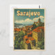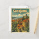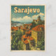 A nostalgic and evocative depiction of Sarajevo, the capital of Bosnia and Herzegovina, highlighting its rich history and diverse cultural influences. The design features the city's iconic landmarks, bustling streets, and a blend of Ottoman and Austro-Hungarian architecture, all rendered in a vintage style. This artwork captures the essence of Sarajevo's unique character and historical depth.