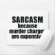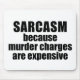 NewParkLane - Funny mouse pad, with sarcastic quote: "sarcasm, because murder charges are expensive', a in modern black typography.