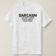 Sarcasm T-shirt saying "Sarcasm The body's natural defense against stupid people. Funny t-shirt with loads of attitude and fun. A great funny shirt to wear anywhere.