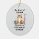 Unleash the sass with this 'My Level of Sarcasm Depends on Your Level of Stupidity' ornament! Featuring a cute orange cat with a hilariously witty expression, this artwork is perfect for those who love clever humor and feline charm. A must-have for cat enthusiasts and sarcasm experts alike, it’s the ideal gift for anyone who enjoys a touch of playful attitude.