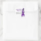 A drawing of a purple ribbon wearing a helmet and holding a sword and shield, with the words "Sarcoidosis Warrior. Fighting for a Cure. Fighting for my Life."