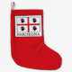 Perfect! Exactly what I ordered! I uploaded a picture of my blue chow, and the screen print was incredible. the back side of the stocking was the red and black checkered print. my puppy's name was also printed on the cuff of the stocking. PERFECT! Highly recommend this product! My puppy's name was screen printed onto the cuff of the stocking, the font was perfect!