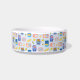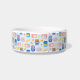 This is a heavy, durable bowl decorated with Tibbies of many colors, the perfect size for hungry/thirsty Tibs. The design is interesting and printing clear.