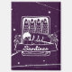 A vector illustration of a tin of sardines on a purple background. This fish tin has the look of a vintage, distressed poster with folds increases. A design for anyone who loves canned slash canned fish.