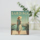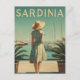 This elegant vintage poster portrays a woman dressed in classic 1950s fashion strolling along Sardinia’s picturesque promenade. Behind her, graceful sailing boats float peacefully in the turquoise harbor waters, framed by the island’s rugged coastline. The artwork uses warm, muted tones and nostalgic textures to evoke the charm and relaxed elegance of mid-century Mediterranean life. Ideal for lovers of vintage style, coastal beauty, and timeless travel art.