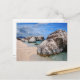Postcard with big rocks on the sand beach of Cala Mariolu in the Golfo di Orosei, Sardinia, Italy.