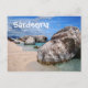 Postcard with big rocks on the sand beach of Cala Mariolu in the Golfo di Orosei, Sardinia, Italy with the text: 'Sardegna', italian for 'Sardinia'.