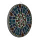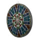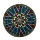 Composed of multiple sections, it features a layered and intricate appearance, with a vibrant color palette including blues, greens, reds, and browns.