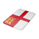This rug is just as pictured! Vibrant Red and very soft material, nice to step in out of the tub! Matches my set of accessories and shower curtain! A must have to add some whimsy to your bathroom! Very nice, vibrant and clear print! Beautiful!