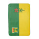 This design features the flag of the Canadian province of Saskatchewan. It features horizontal bands of green and yellow: the green is said to represent the northern wooded areas of the province and the yellow is said to represent grain fields in the southern region. Towards the right is an illustration of a prairie lily, which is a flower native to North American, and towards the left is the coat of arms of Saskatchewan. Roughly half of the province's population lives in the two largest cities, Saskatoon and the provincial capital Regina.