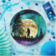 Sasquatch and his pet bear walking on the mountain under a full moon