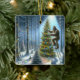 Sasquatch Decorating Christmas Trees Funny Ceramic Ornament