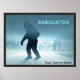 Depicts a late-night encounter with Sasquatch (Bigfoot) on a lonely rural road. Sasquatch is in silhouette against the headlights of a car. Text reading "SASQUATCH" appears in glowing blue and white. Add your own additional text.
