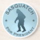 A dark silhouettes of Sasquatch (Bigfoot) on a medium blue background along with block text reading "SASQUATCH FOR PRESIDENT." Not exactly thrilled with the choice of candidates for President this time around? Looking for a Washington outsider? Here's your candidate. In fact, Bigfoot spends just about all of his time outside in Washington, Idaho, Oregon, several other states; and parts of Canada. Big enough to fill any shoes, but no need to worry that he will harangue Congress to impose a radical agenda, left or right, as he is so rarely seen. Vote for a wilder America. Vote Sasquatch! Brought to you by The Cryptozoology Political Action Committee (CPAC); Bonners Ferry, ID