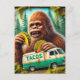 A Sasquatch eating tacos from a retro taco delivery van he found in the mossy forest cute funny fantasy art AI generated art