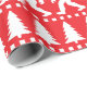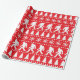 Bigfoot Christmas holidays ugly sweater style gift wrap, patterned with Sasquatches, fir trees and snowflakes in festive red and white