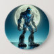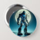 Sasquatch stands under a full moon surrounded by mountains, revealing a titanium exoskeleton of electronic circuitry and LED lights...