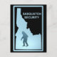 Features the dark silhouette of a Sasquatch (Bigfoot) on a powder blue background enclosed by the outline of Idaho. Official Sasquatch Security issue. Unobtrusive safety - as Sasquatch are so rarely seen you will hardly know they are there. If you wish to open a Sasquatch Security franchise in your state let me know and I will post a customized logo. If you live or travel in rural areas of the Pacific Northwest you may possibly come across one of the region’s lesser-known species of native wildlife. “Sasquatch” is an anglicized derivative of the word “Sésquac” which means “wild man” in a Salish Native American language. Sasquatch is reported to be a large, hairy ape-like creature, ranging between 6–10 feet tall, weighing in excess of 500 pounds, and covered in dark brown or dark reddish hair. Alleged witnesses describe large eyes, a pronounced brow ridge, and a large, low-set forehead; the top of the head has been described as rounded and crested, similar to the sagittal crest of the male gorilla. Sasquatch is commonly reported to have a strong, unpleasant smell. Enormous footprints for which it is named are as large as 24 inches long and 8 inches wide. Tufts of hair of an unidentified primate species are often found. Most scientists say Sasquatch, aka Bigfoot, is nothing but folkloret and attribute sightings or footprints to misidentification or hoaxes. However, some scientists such as Jane Goodall believe it may exist. One theory suggests Sasquatch are a relic population of ancient hominids which reached North America from Eurasia via the Bering Land Bridge during a period of glaciation. Stories about Sasquatch-like creatures are found among the indigenous population of the Pacific Northwest. The legends existed prior to a single name for the creature. They differed in their details both regionally and between families in the same community. Similar stories are found on every continent except Antarctica to include the Yeti of the Himalayas and the Australian Yowie. Members of the Lummi tell tales about Ts’emekwes, the local version of Bigfoot. The stories are similar to each other in terms of the general descriptions of Ts’emekwes, but details about the creature’s diet and activities differed between the stories of different families. Some regional versions contained more nefarious creatures. The stiyaha or kwi-kwiyai were a nocturnal race that children were told not to say the names of lest the monsters hear and come to carry off a person—sometimes to be killed. In 1847, Paul Kane reported stories by the native people about skoocooms: a race of cannibalistic wild men living on the peak of Mount St. Helens. The skoocooms appear to have been regarded as supernatural, rather than natural. Less menacing versions such as the one recorded by Reverend Elkanah Walker exist. In 1840, Walker, a Protestant missionary, recorded stories of giants among the Native Americans living in Spokane, Washington. The Indians claimed that these giants lived on and around the peaks of nearby mountains and stole salmon from the fishermen’s nets. The local legends were combined together by J. W. Burns in a series of Canadian newspaper articles in the 1920s. Each language had its own name for the local version. Many names meant something along the lines of “wild man” or “hairy man” although other names described common actions it was said to perform (e.g. eating clams). Burns coined the term Sasquatch, which is from the Halkomelem sásq’ets (IPA: [ˈsæsqʼəts]), and used it in his articles to describe a hypothetical single type of creature reflected in these various stories. Burns’s articles popularized both the legend and its new name, making it well known in western Canada before it gained popularity in the United States. BFRO provides a free database to individuals and other organizations. Their internet website includes reports from across North America that have been investigated by researchers to determine credibility.
