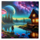 Sasquatch Watching nebulas on a distant planet Ceramic Tile