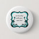 Sassy Floral Frame Button, Turquoise Pinback Button