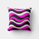 TWO - 2 - pillows in one! One side has swirly stripes of pink, white, and black. The other side has FUNKY AND FUN design of circle outlines of lime, hot pink, and bright blue. Add name or choice of wording on. This side. It's a real hit with girls of all ages, little girls, teens, tweens, and young ladies. UNIQUE AND FUN DESIGN!!!