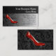 Show your sense of style with this super chic red women's dress shoe design, personalized with your name or other favorite shoe shopping or saying. Sassy, stylish and high fashion red stiletto pump heel, patent leather in vibrant rich crimson red, with showing the side and bottom. Black and dark charcoal gray damask background. All Designs Copyright © CuteComfy.com