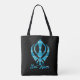 This smart black tote bag features a bold Sat Nam Khanda in a blue tie-dye technique. Great for everyday wear or to tote around your yoga stuff!