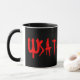 Satanic coffee mug with red devil's fork. Evil demon design for satan fans. Funny Halloween gift idea.
