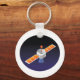 A satellite up in space with the stars. This design looks really effective on these Keychain