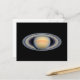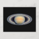 This photograph of the planet Saturn was taken by the Hubble Space Telescope, and shows the body of the planet and its rings from underneath, against the black background of space.