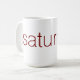 This sleek coffee mug features a bold "Saturn" text logo, perfect for space enthusiasts and lovers of modern design. Ideal for adding a touch of cosmic flair to your daily routine or as a unique gift!