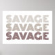 Poster with trendy expression ‘savage’ written out three times in cool dark colored writing that fades from light to dark.