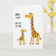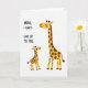 This card shows a simple scene on a bright white background, centered on two long-necked savanna animals standing close together. The taller adult on the right has a sunny yellow coat with deep brown patches, and it leans slightly toward the smaller one like a steady, caring presence ❤️. The younger companion to the left tilts its head up with an affectionate, admiring look, their closeness suggesting a gentle bond of friendship and family warmth. Both faces are drawn with closed eyes, small relaxed smiles, and soft rosy cheeks that make the moment feel tender and calm. On the left side, the message “MOM, I ALWAYS LOOK UP TO YOU.” is set in a casual handwritten-style lettering, spaced in short lines so it sits neatly beside the characters. The text appears in a dark tone that reads clearly against the white space, balancing the illustration without crowding it 🌼. Bright yellow bodies and rich brown markings stand out strongly against the plain background, with the taller figure positioned slightly behind and to the right of the smaller one.