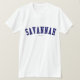 Savannah! Is your name Savannah? Or do you have a wife, girlfriend, female family member or female friend named Savannah? If so, this "Banner" shirt is exactly the gift that you're looking for! The design features "Savannah" in arched navy lettering across the chest in the classic College font.