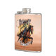 Well made flask, a little better than I had expected. Flask came in clear plastic box which gave it a nice presentation when I took it out of the zazzle packaging. Image is not printed on flask but on sticker. Don't know how this will hold up I haven't used it yet. This would make a Great gift! I plan to purchase more for friends! Cheers. I thought a little brighter than computer. Very crisp, writing wasn't