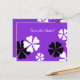 Black and white flowers on a deep purple background decorate this classy "Save the Date" postcard. The reverse has white lettering on the same background design. Very classy! Default text is for a 70th Birthday, but you can easily change the text for name, age, date, location, etc. Matching name and address label is zazzle product 106641237613375734. All Rights Reserved © 2015 Alan & Marcia Socolik.