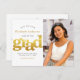 Make sure all your friends and relatives will be able to celebrate your graduate’s milestone graduation! Send out this stunning, simple, modern, personalized photo “Save the Date” postcard for an event to remember. Bold, graphic, faux gold foil typography overlays a black background. On the right hand side, add a photo of your choice. Personalize the custom text with your graduate’s name, class year and date. Your custom message, a faux gold foil graduation cap icon and your return address adorn the back. Matching invites, thank you cards, cap toppers, napkins, plates and other graduation goodies are also available in this trendy and stylish collection. Guaranteed to add stylish fun to their special occasion!