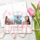 Make sure all your friends and relatives will be able to celebrate your daughter’s milestone graduation! Send out this stunning, simple, modern, girly, personalized three photo “Save the Date” postcard for an event to remember. Sparkly rose gold typography script overlays a dusty pink and white striped background with tiny pink and gold confetti dots. Add three photos of your choice and personalize the custom text with your graduate’s name, school name and date. Your custom message, a rose gold graduation cap icon and your return address adorn the back. Matching invites, thank you cards, cap toppers, napkins, plates and other graduation goodies are also available in this trendy and stylish collection. Guaranteed to add stylish fun to her special occasion!
